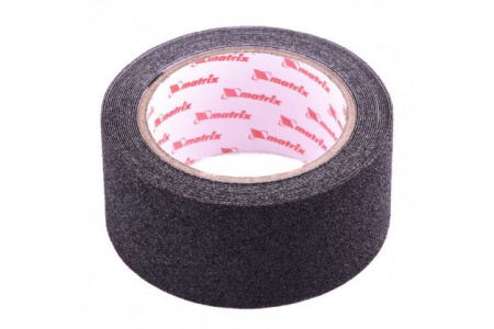 Клейкая противоскользящая лента Matrix 88707 черного цвета, шириной 50 мм и длиной 5 м, позволяет снизить риск получения травм на лестницах, кафеле и других скользких поверхностях. Пригодится в помещениях с большой посещаемостью: общественных зданиях, многоквартирных домах, бассейнах и др. Благодаря прочному клеевому составу лента крепится на любые поверхности: ламинат, кафель и т. д. Ленту следует монтировать при температуре выше +12 ℃ на предварительно очищенную сухую поверхность.